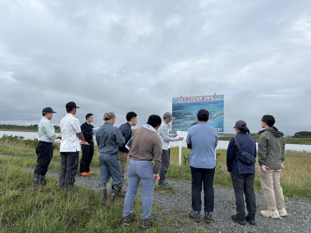 今年はコロナウィルスの影響で北海道内の大学生を招いての研修は困難なため猿払村の教職員に協力して頂き実施、今回は例年3日間の行程を1日に絞り村内在住の教育関係者にイトウの住む猿払川と自然の魅力を知って頂く企画に変更しました。