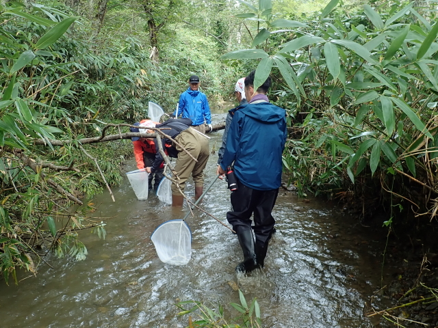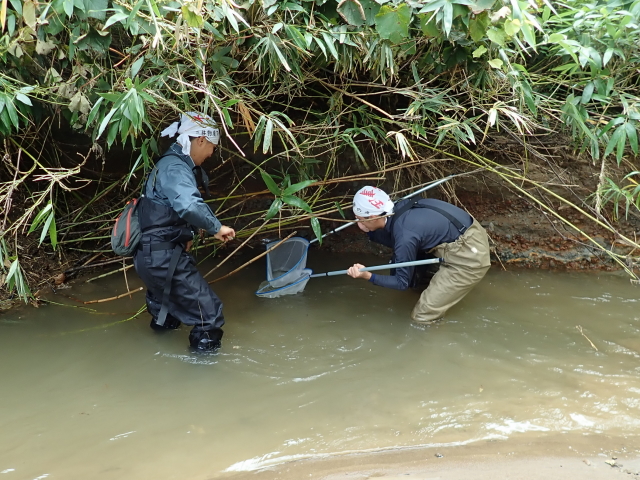 実際に河川で生息魚類を捕獲観察